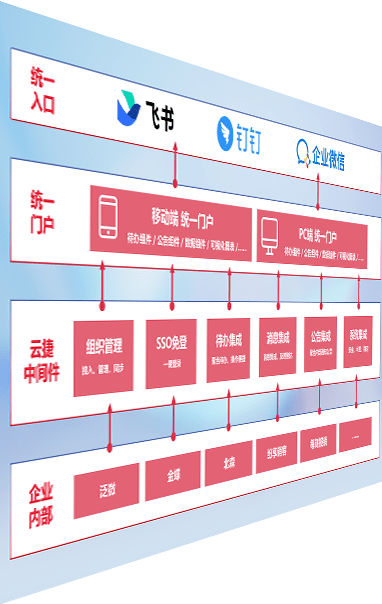对协作平台提供支持服务,,,,支持企业应用与协作平台对接,,,包含组织同步、、、、消息集成、、、、待办集成等。。。支持目前主流的协作平台:钉钉、、、、企微和飞书。。。。